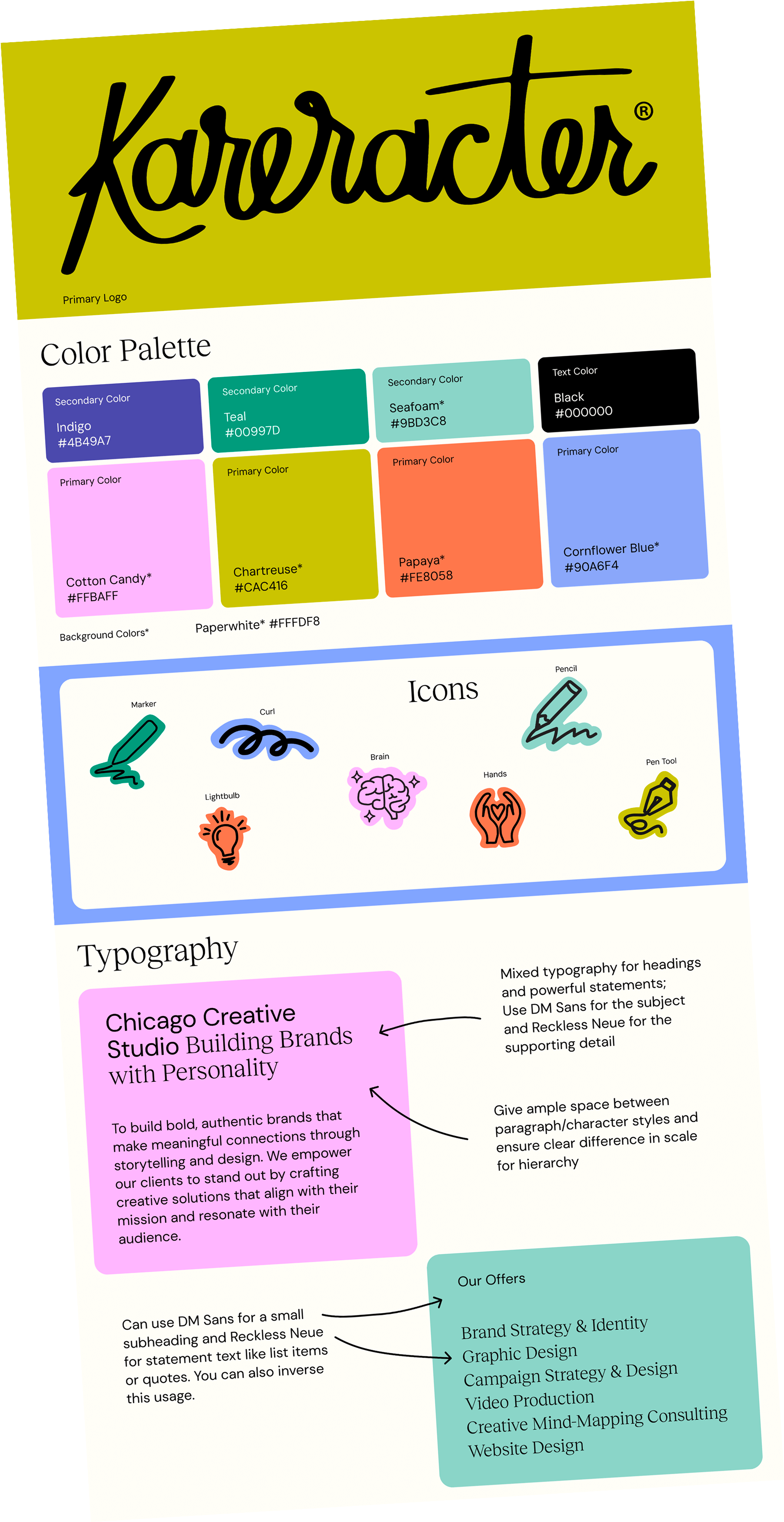 I’m a second-gen, self-taught brand designer, and I’ve been building bold, personality-packed brands for creative founders and marginalized folks since 2019. My approach to design? Less “industry standard,” more your standard.