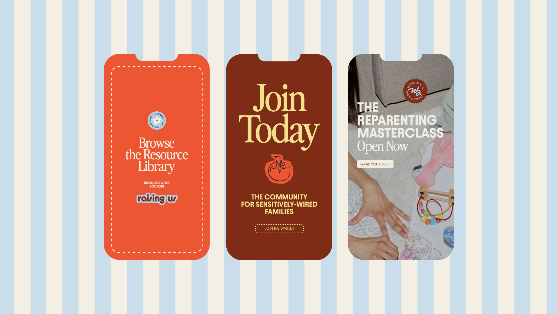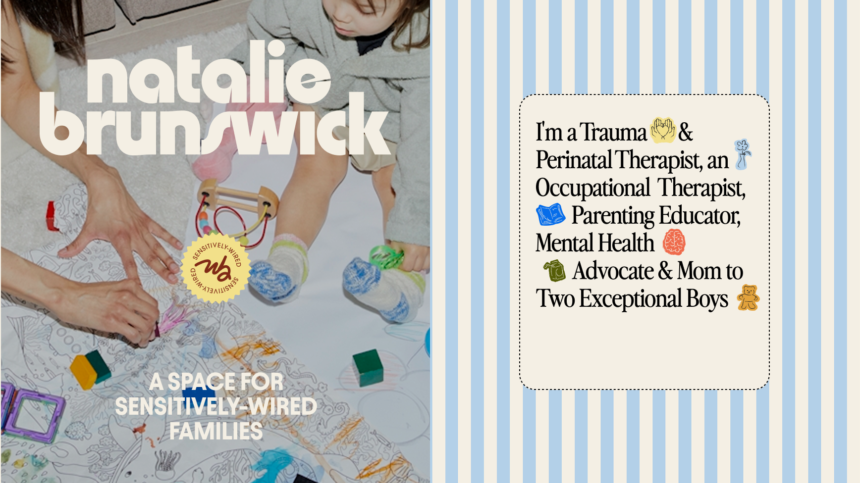 Natalie Brunswick is a therapist for kids and their parents, specializing in fostering community around the sensitively-wired family. She hosts a community membership and provides resources & support for parents backed by research. For her brand, she wanted it to feel like an extension of her style and personality for a warm, welcoming, yet cool and approachable identity—no clinical, cold, or stuffy vibes allowed.