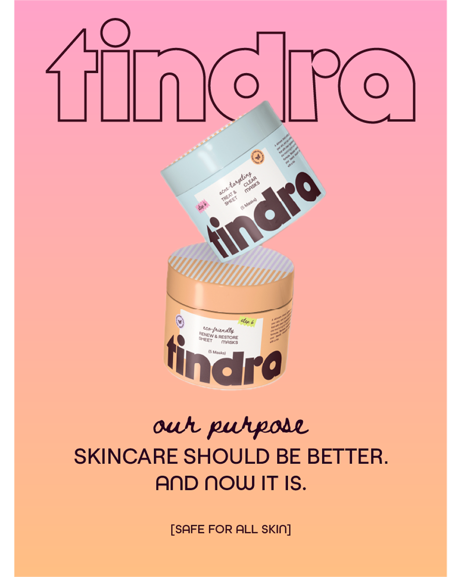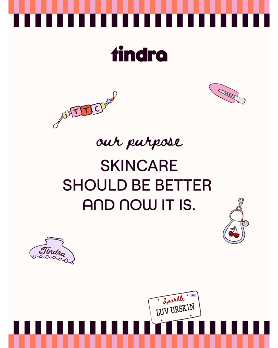 Tindra is an innovative skincare brand creating formulas that are safe for the young audiences that have been increasingly interested in beauty products. The goal: to create a brand that's hot, and aspirational; that young girls want to put on their vanities; and that moms will feel comfortable buying. There was a balance to strike between being youthful but not childish—because young girls want what young women are using—and being aspirational but not unreachable.